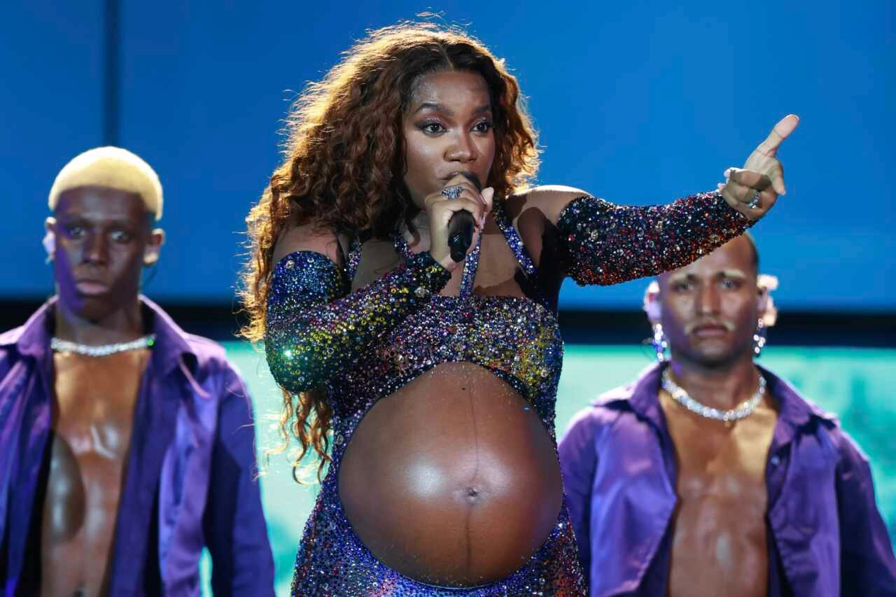 Iza se apresentou com oito meses e três semanas de gestação na noite de sexta-feira (20) durante a comemoração dos 40 anos do Rock in Rio. A artista contou com assistência médica e uma ambulância disponível durante o show, que fez parte da programação dedicada às mulheres, com uma maioria feminina nas atrações.